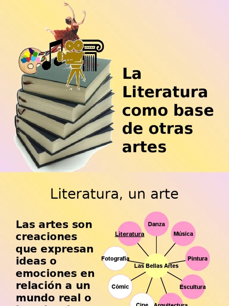 La literatura y el arte. Al construirse como conjuntos de fonemas, de palabras y de frases, los textos literarios son gobernados por una primera disciplina o ciencia de carácter general, que es la gramática … .la literatura como arte el arte de la palabra la falta de definición que venimos percibiendo se deriva de la dificultad de determinar cuándo existe una voluntad artística indubitada en los casos en que nos servimos de las palabras. La unesco considera el dominio de la cultura y las artes necesario para la formación de las personas. Arte y literatura, lazos entre las culturas stephen humphreys desde que existen, las culturas se entremezclan, se influyen mutuamente y dan.