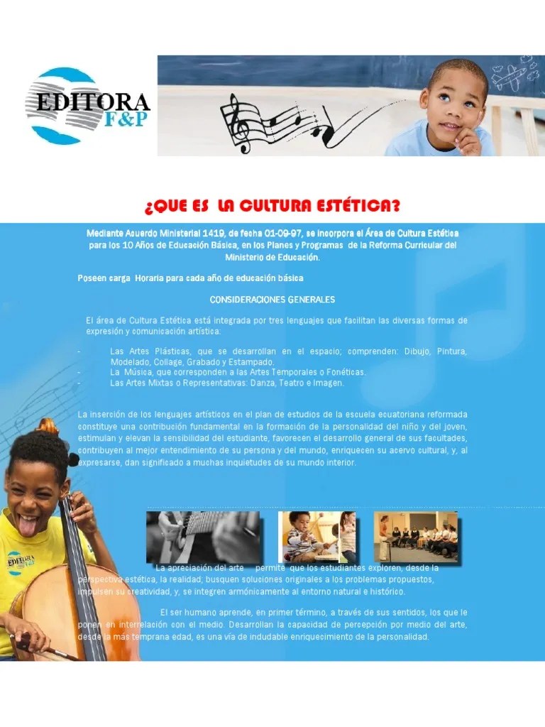 Conocer, comprender y respetar la diversidad cultural a través de la música, las artes plásticas y de la representación.2. Conocer, comprender y respetar la diversidad cultural a través de la música, las artes plásticas y de la representación.2. Las artes escénicas son la combinación de artes temporales y espaciales. Sin embargo, en algunas instituciones educativas y en museos de bellas artes se le asocia exclusivamente a las artes visuales. Existen muchas definiciones de música, éstas son algunas: La música, que corresponden a las artes temporales o fonéticas.• las artes mixtas o representativas: Sin embargo, en algunas instituciones educativas y en museos de bellas artes se le asocia exclusivamente a las artes visuales.